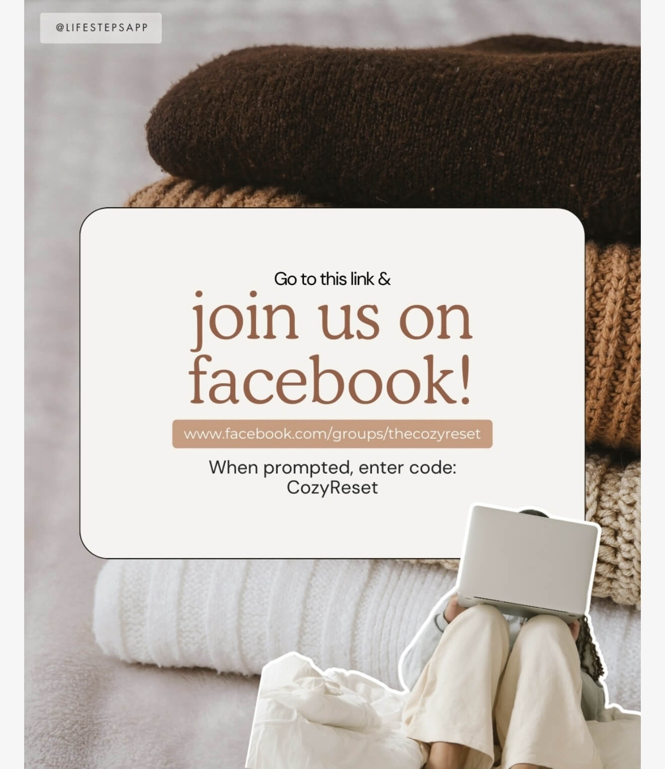 Join us right here on Facebook October 1-15: https://www.facebook.com/groups/thecozyreset